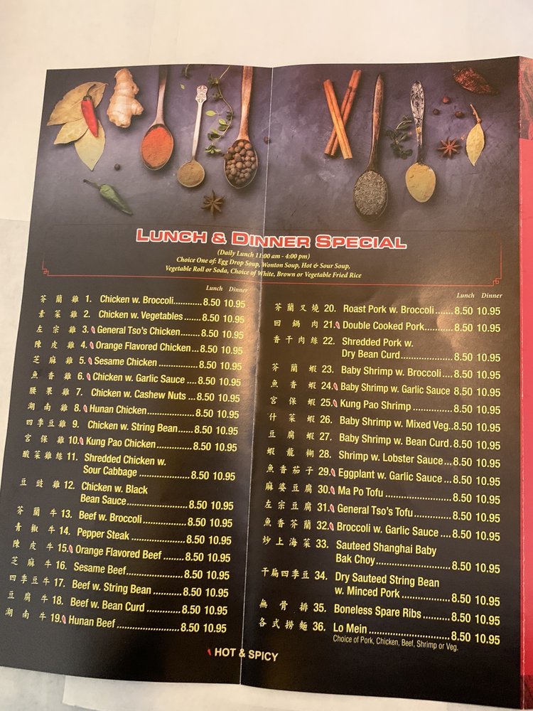 Choice of white, brown or vegetable fried rice and choice of soup, vegetable roll or soda for a side. Hot and spicy.